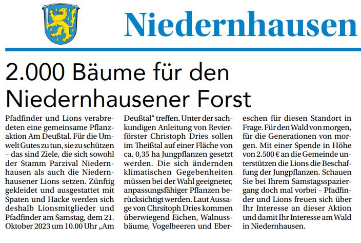 Pfadfinder und Lions pflanzen den Wald von morgen