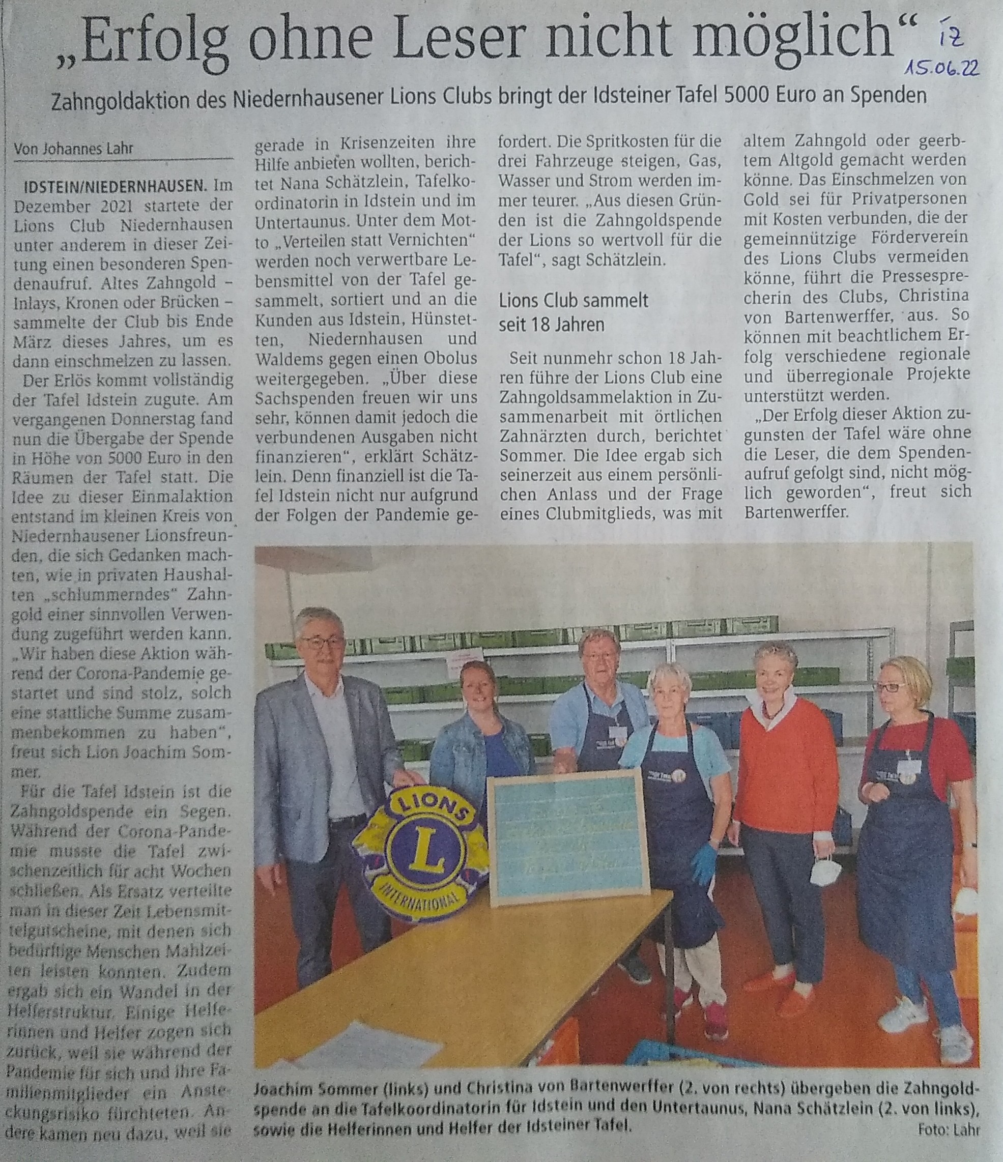 Über einen Spendenaufruf in der Idsteiner Zeitung bzw. den